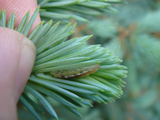 Гусеница в молодой хвое