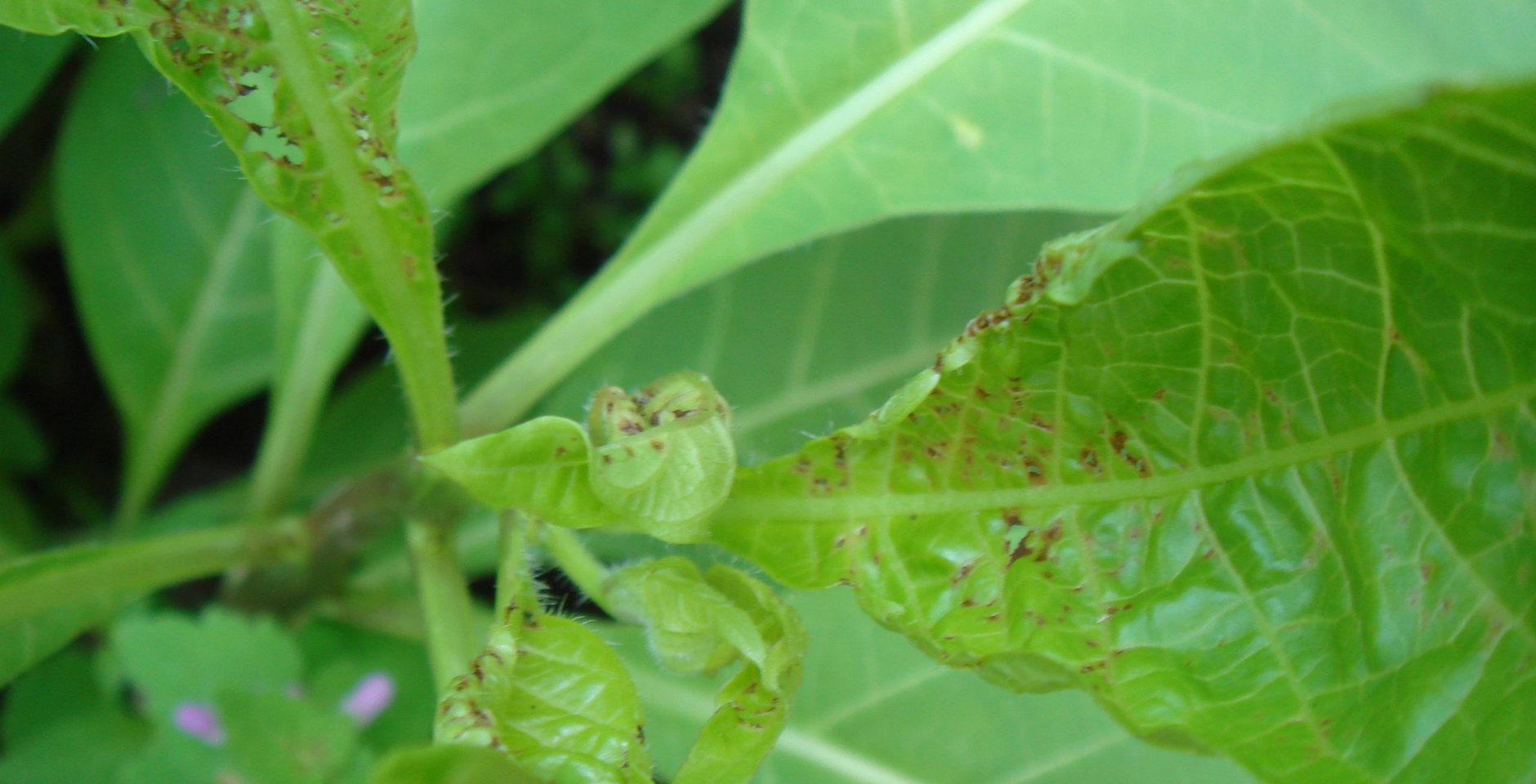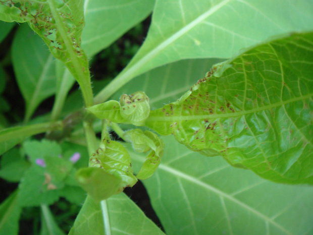 Молодые листья погрызаны и ржавчина