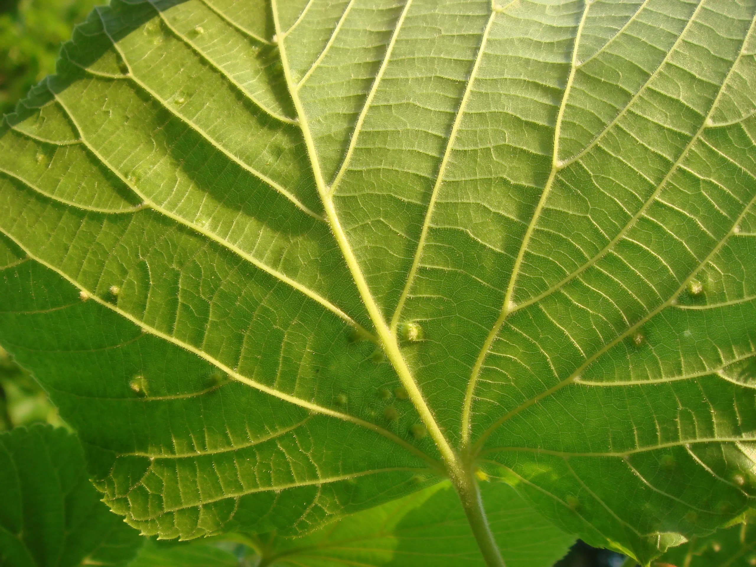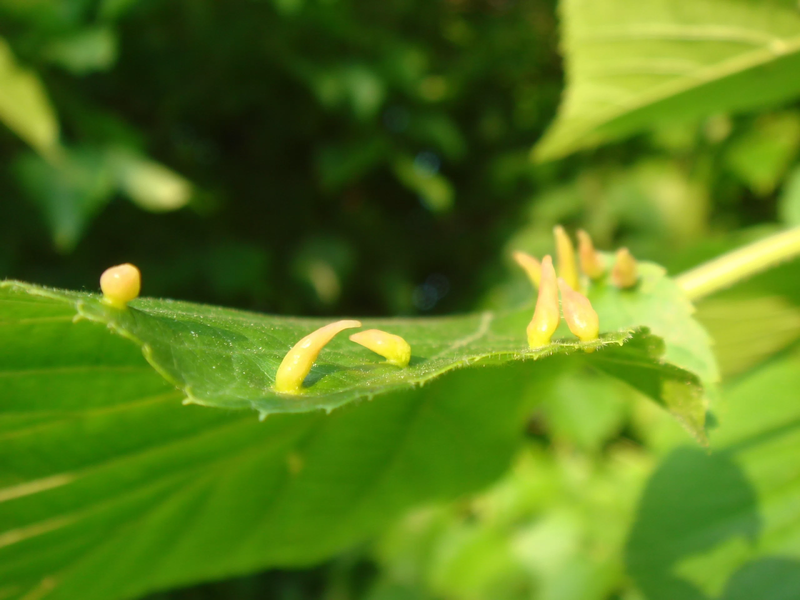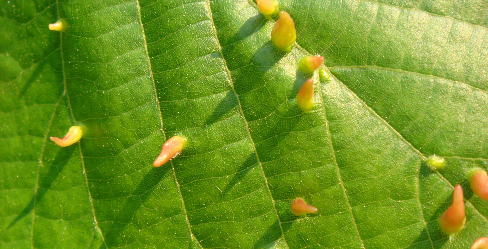 Стручковидные оранжевые галлы на листьях - Eriophyes tiliae