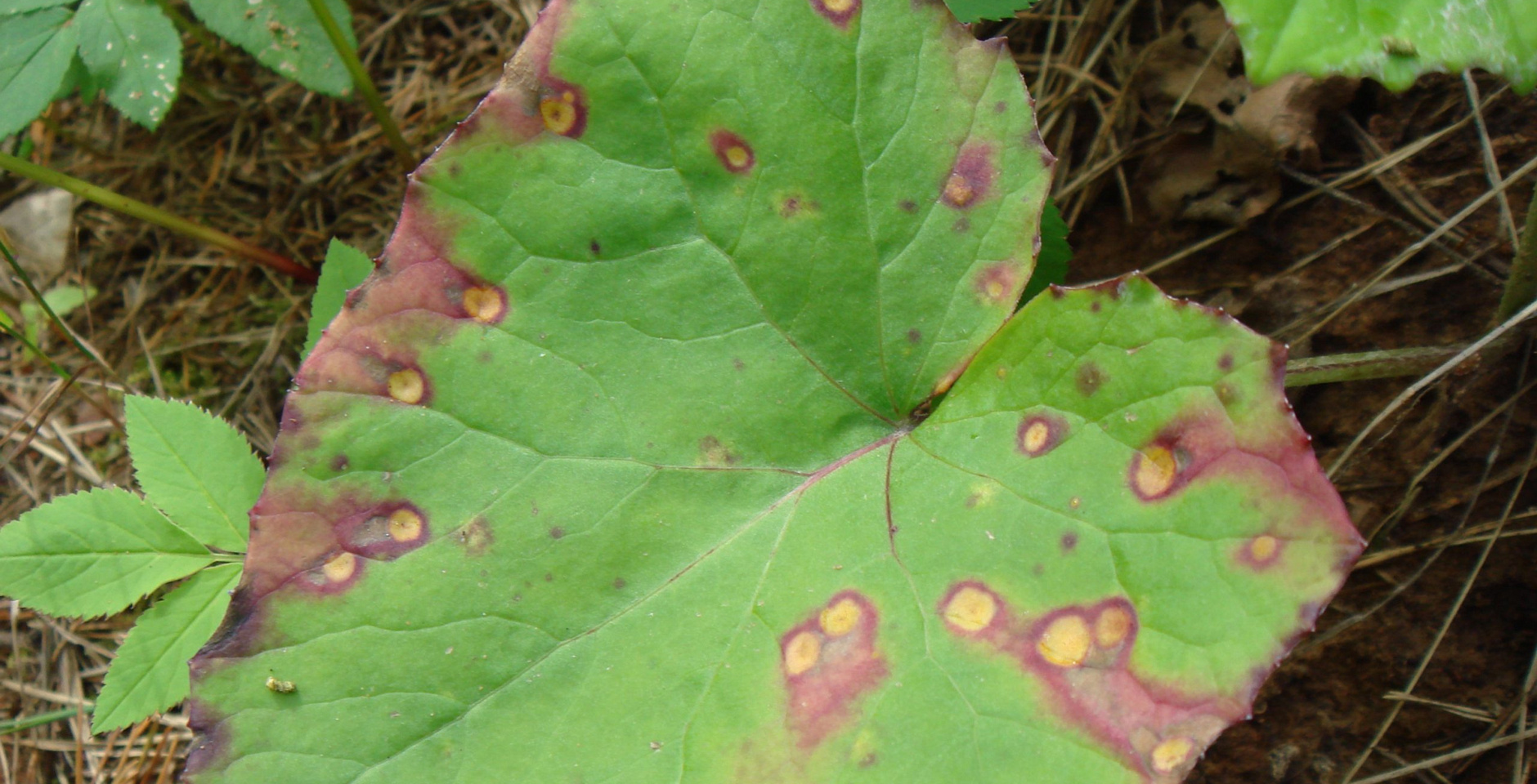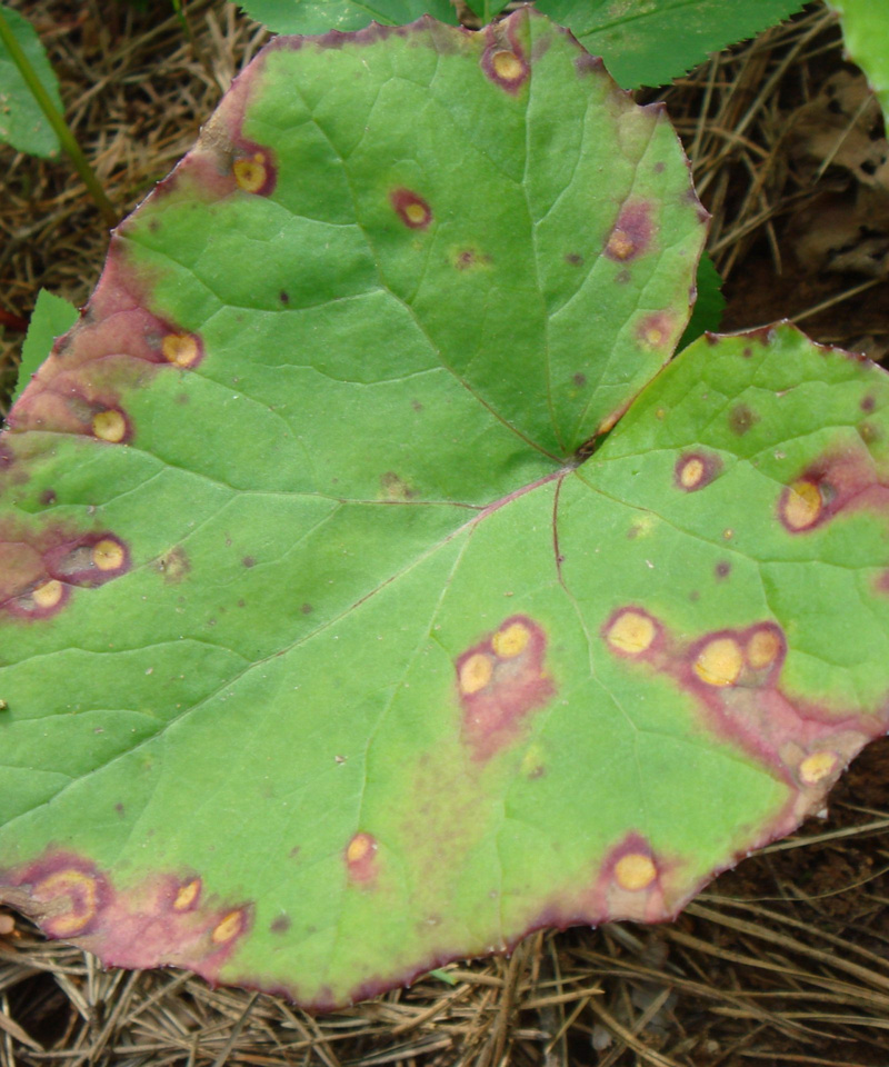 Сиренево-желтые пятна на листе