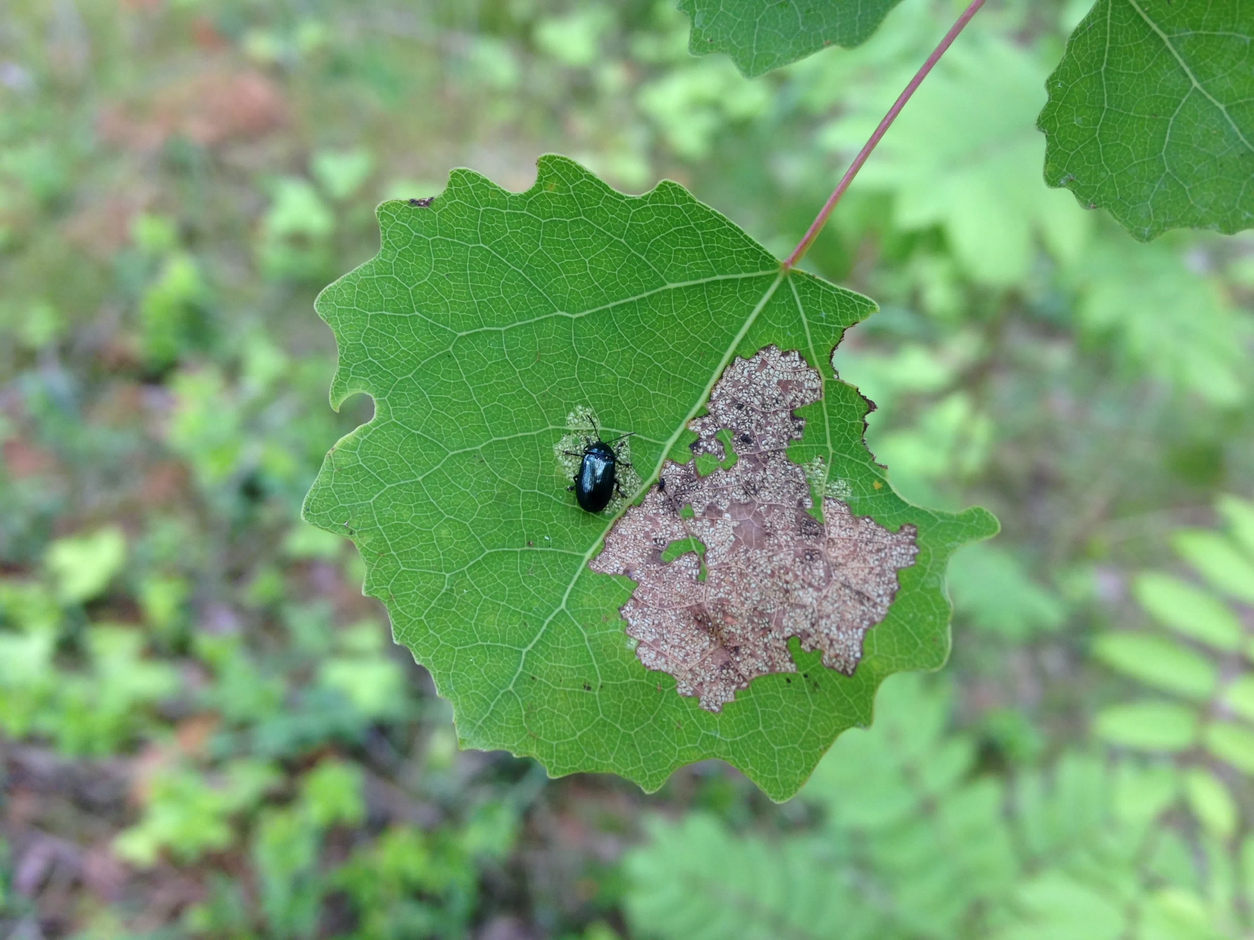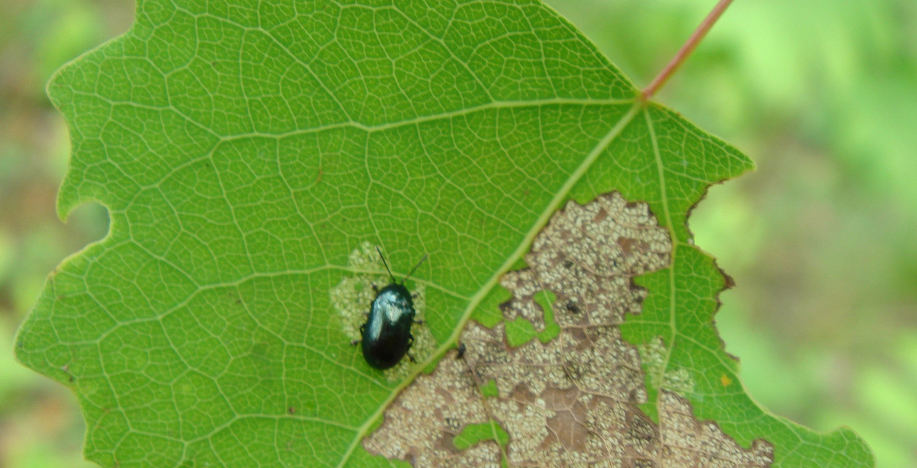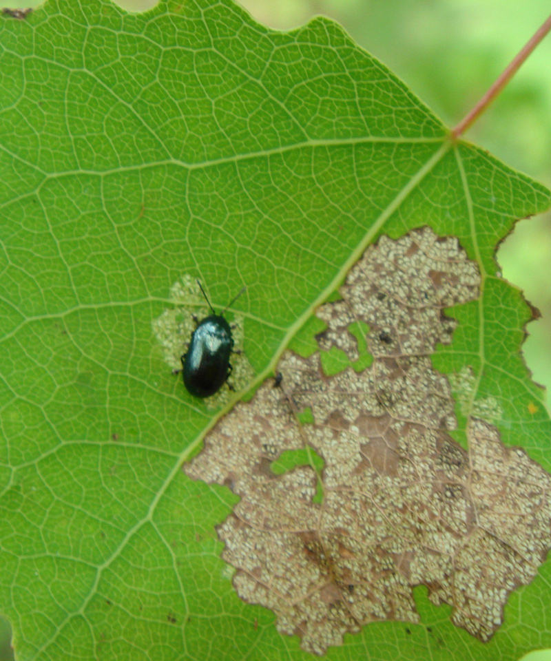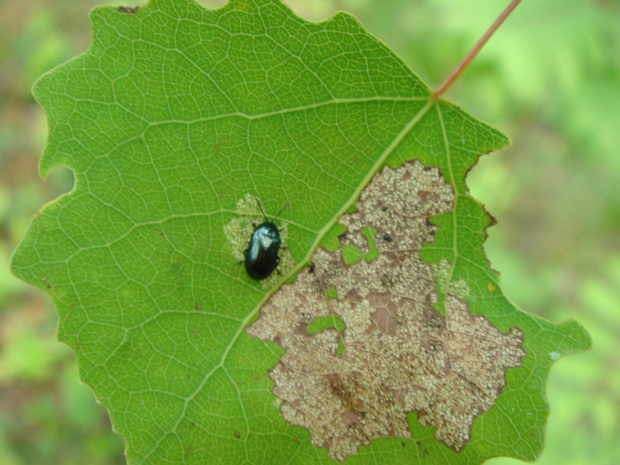 Синий металлический жук с серой сеточкой на листе