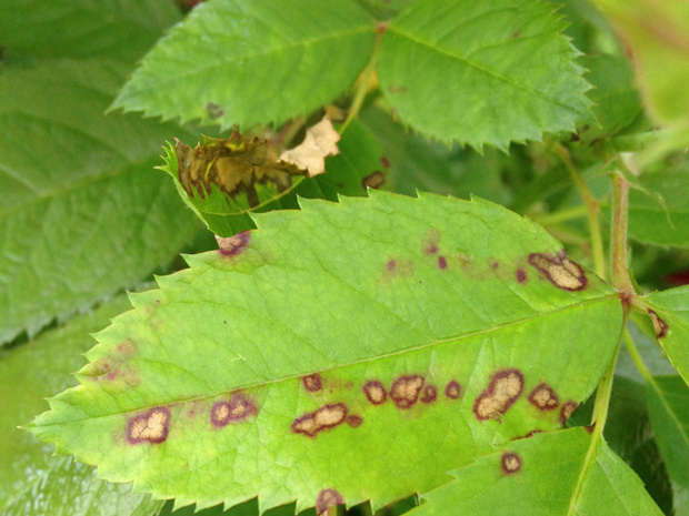 Коричневые с бежевым посередине пятна на листьях - Diplocarpon rosae3 images New images Рододендрон - Rhododendron sppРоза майская - Roda majalis