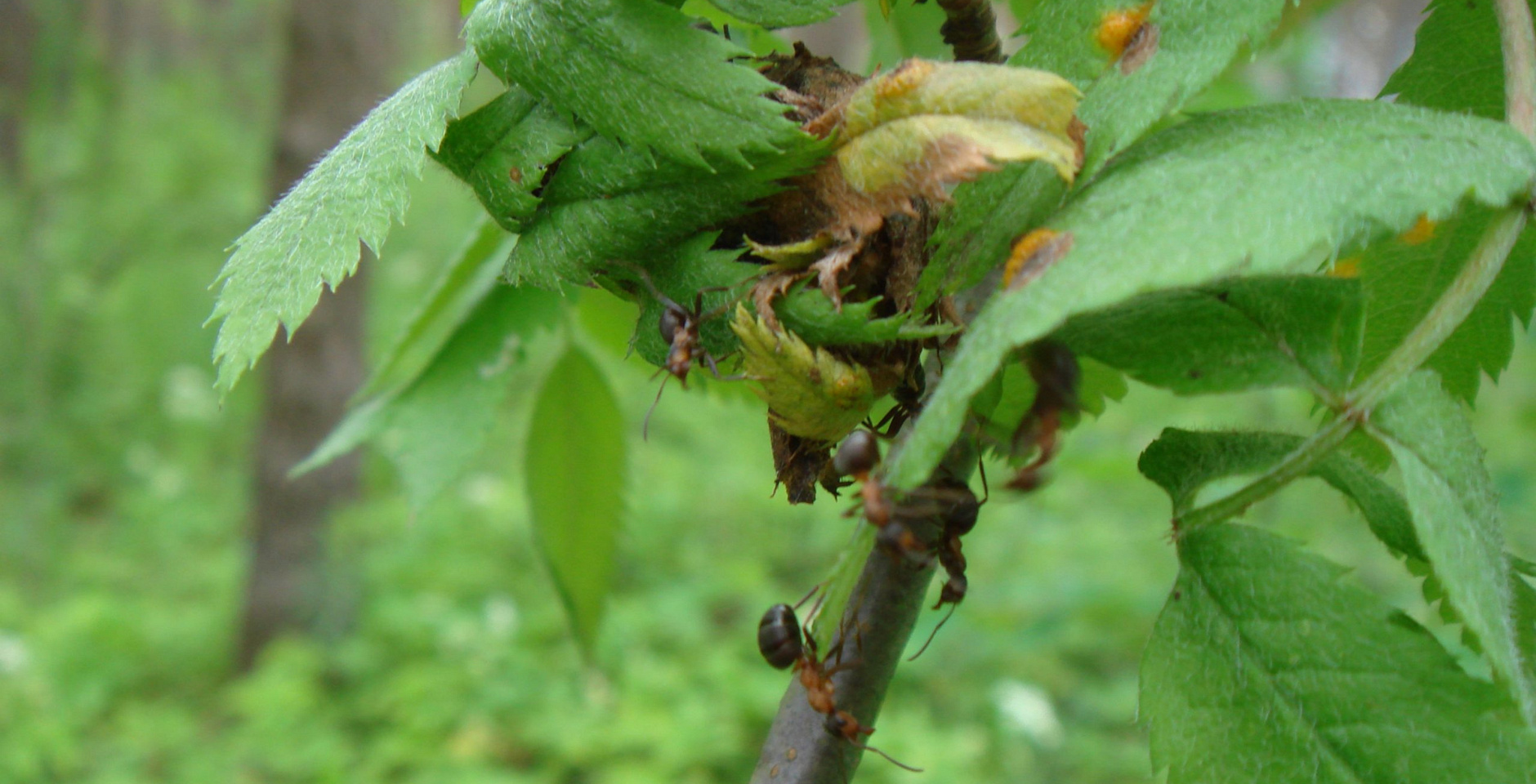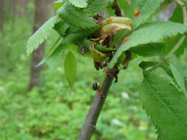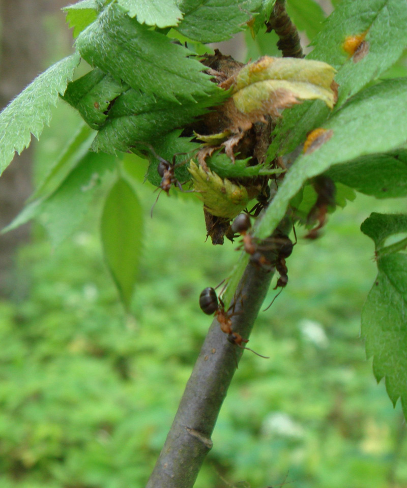 Большие черные лесные муравьи и гнезда тли