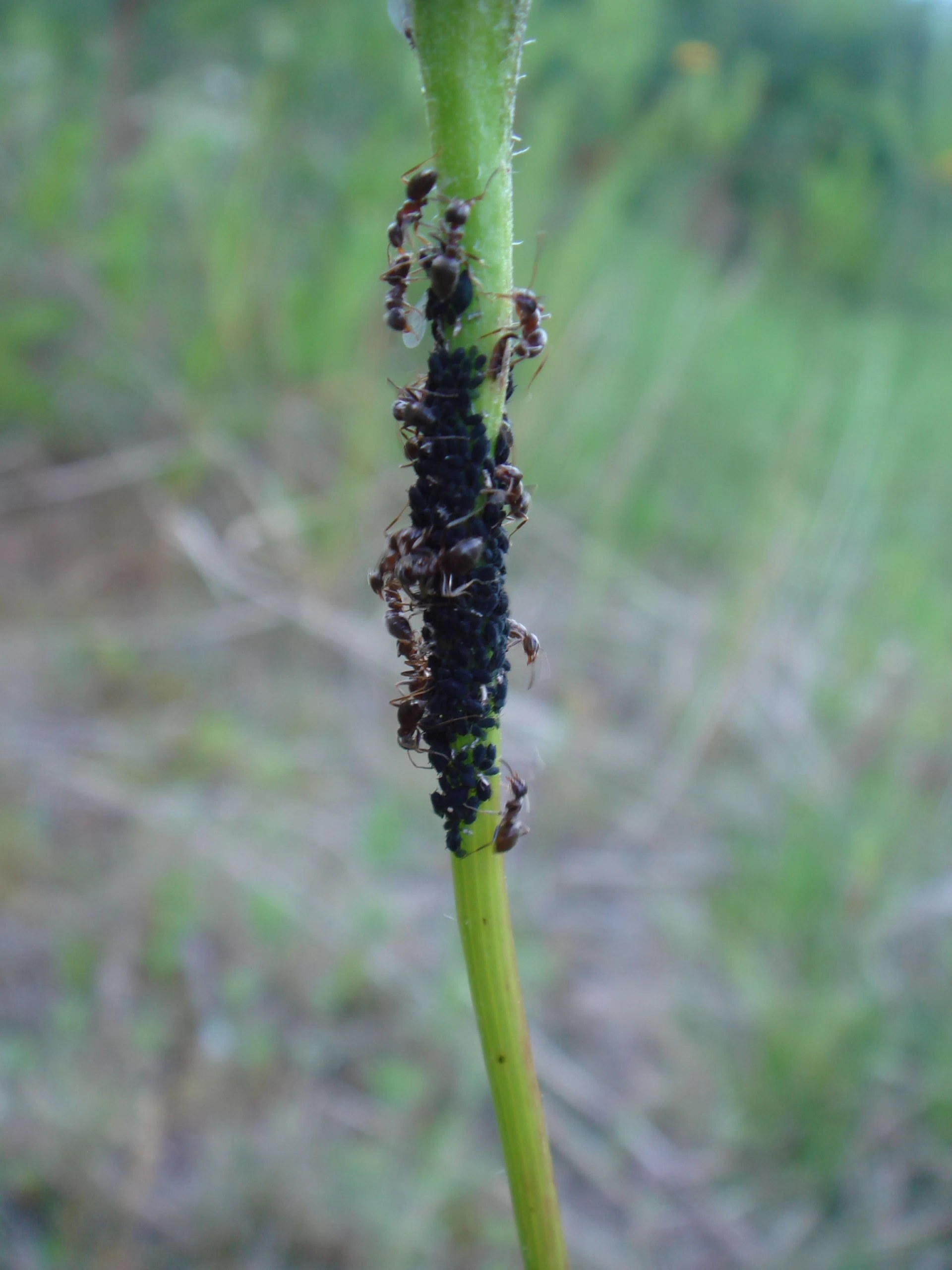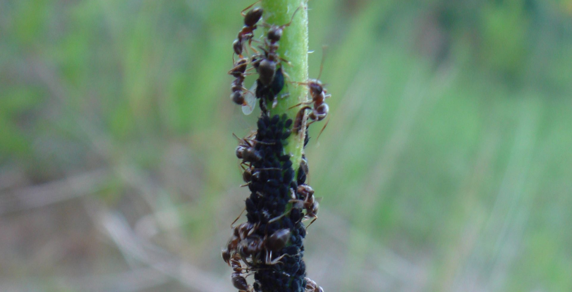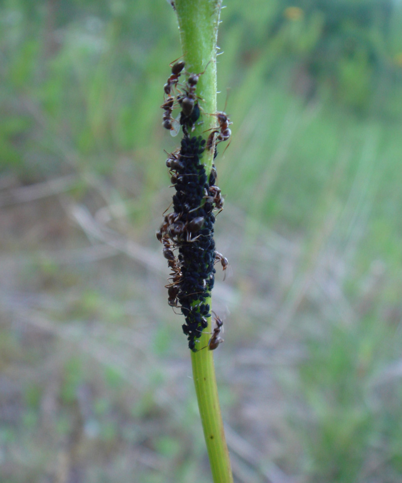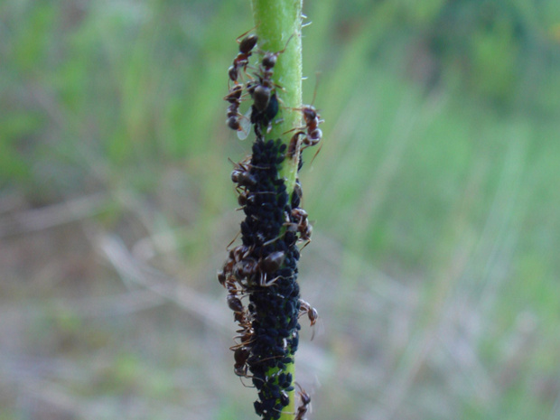 Рыжие средние лесные муравьи и черная тля